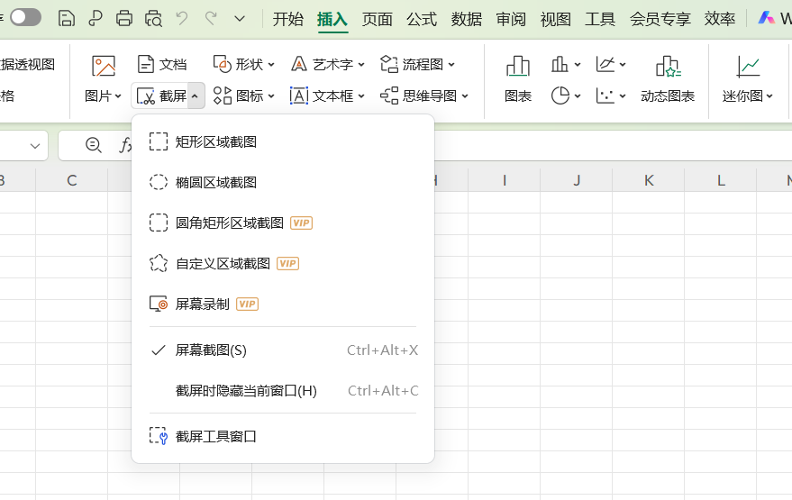 无需额外使用截屏工具,WPS自带区域截屏功能,点击插入菜单栏即可选择不同形式截屏。
