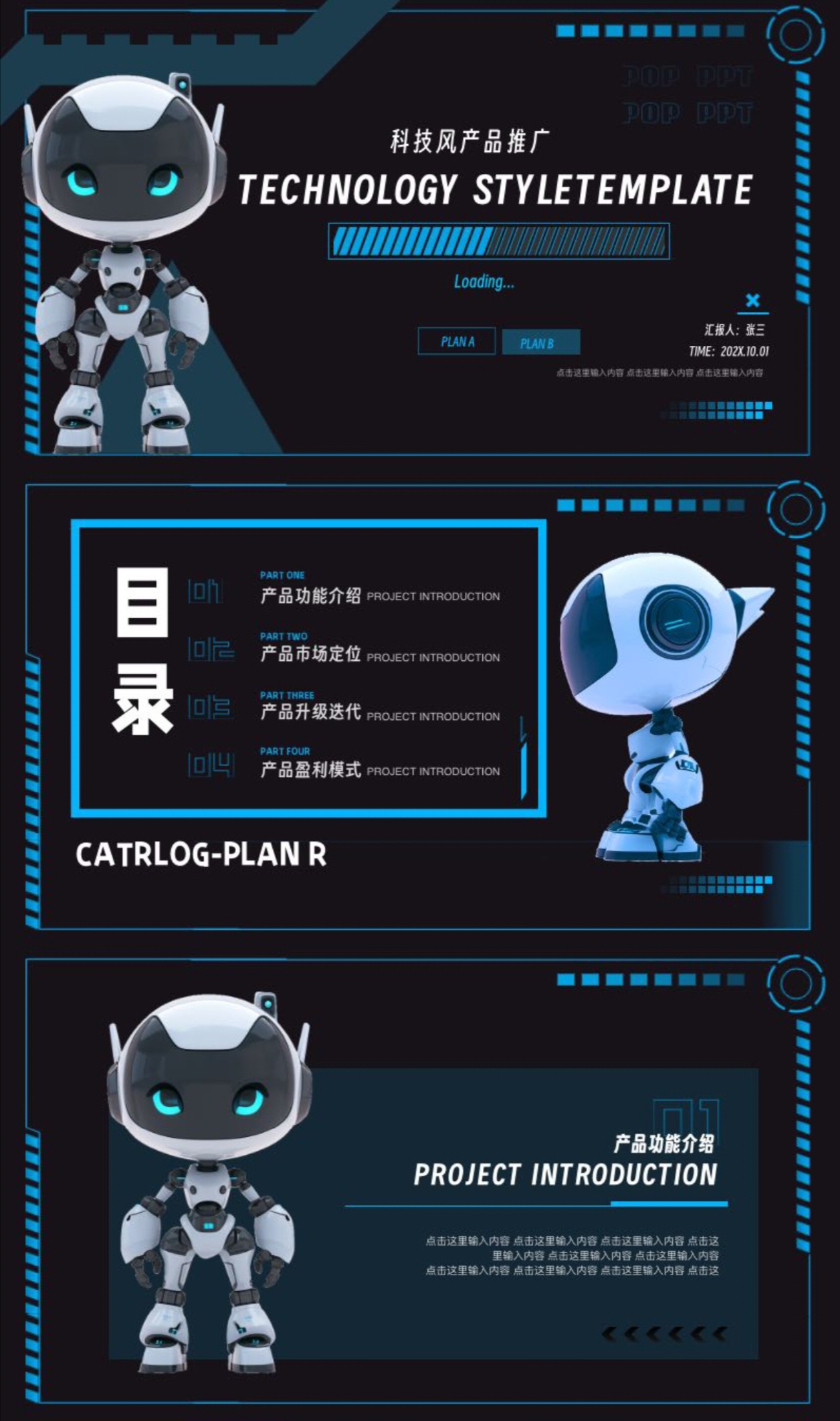 比如要做AI技术类的汇报,直接锁定带机器人、芯片元素的模板。