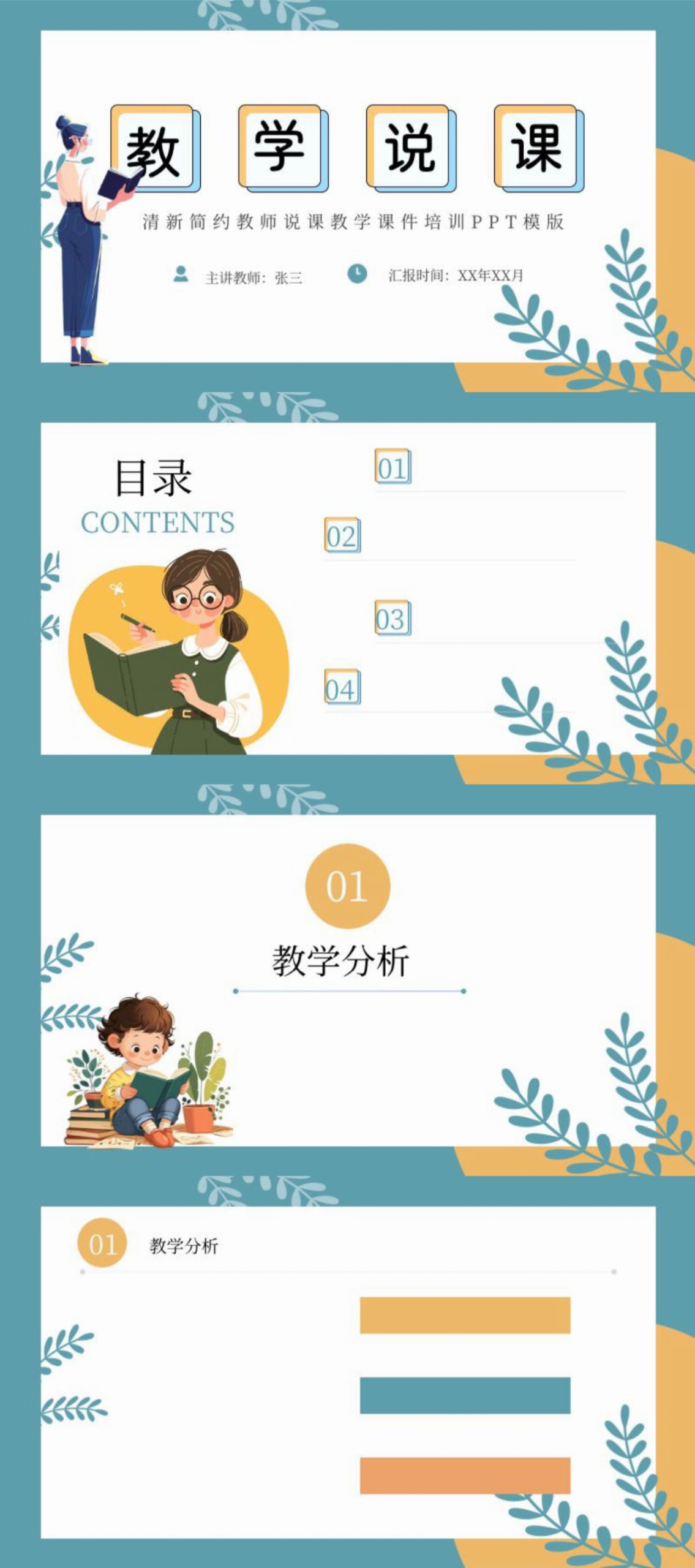 清新简约的教学说课模板,可融入重阳节教学内容,通过“教学分析”等板块,系统讲解重阳文化相关课程设计。