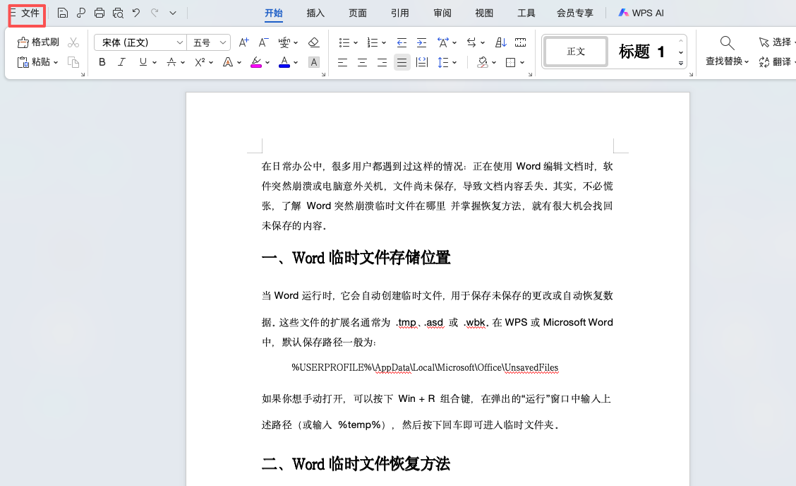 在日常使用Word编辑文档的过程中,最让人头疼的事情之一,就是软件突然崩溃或电脑意外关机,导致Word文档未保存而丢失。其实,只要知道 Word突然崩溃临时文件在哪里,并掌握正确的恢复方法,大多数情况下都能成功找回未保存的文档。