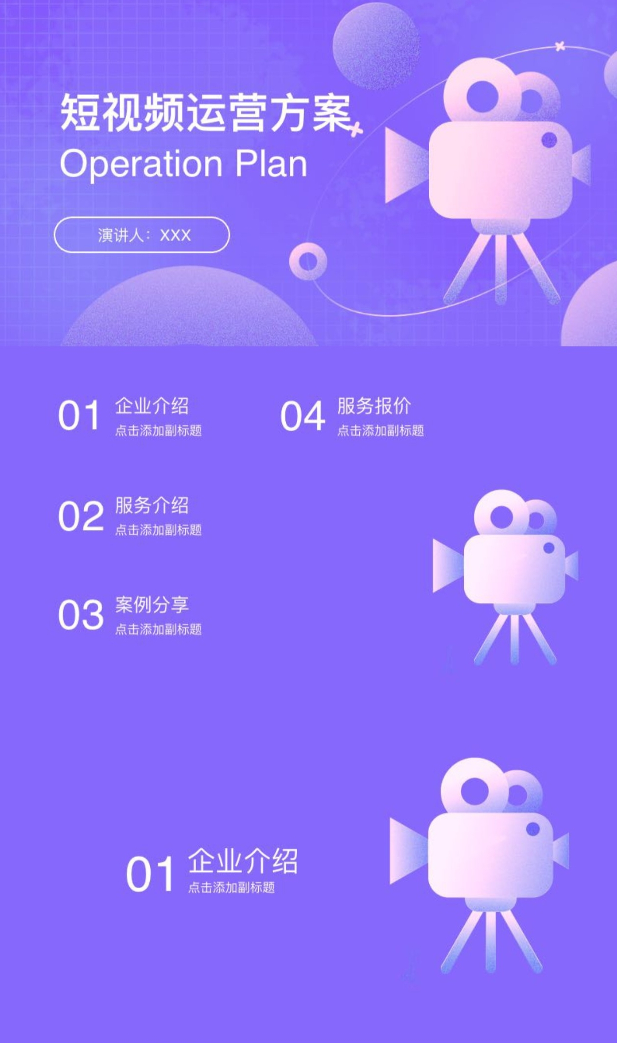 - PPT模板:活泼配色的精简模板,契合短视频轻量化传播需求,提升内容可读性。