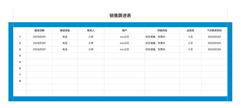 销售过程中的客户跟进往往决定转化率。该模版可记录客户来源、沟通状态与成交意向,帮助销售人员有计划地追踪客户,提升成交效率。