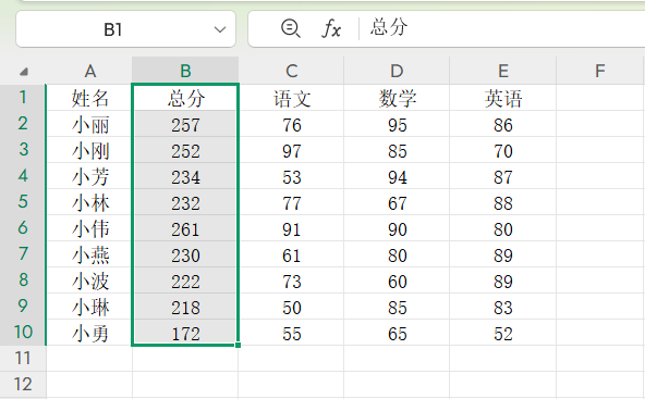 以下图为例,想将E列(总分列)移动到A列(姓名列)后