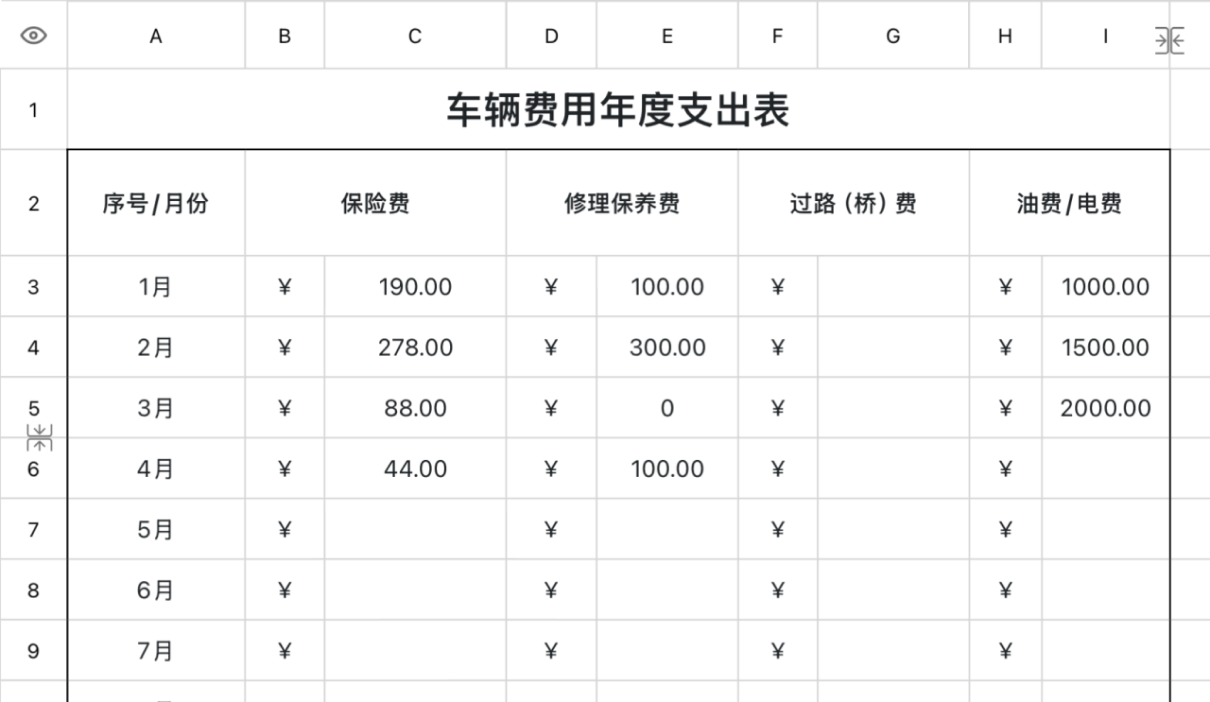 一、车辆费用年度支出表