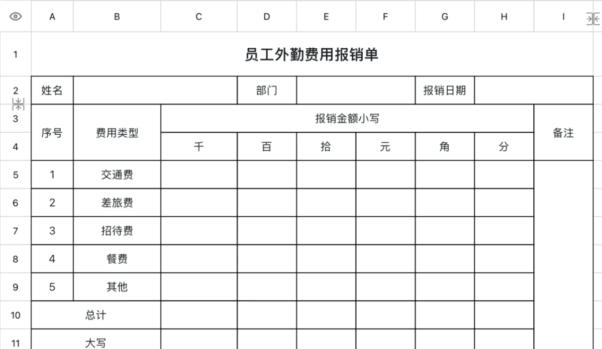 外出出差、客户拜访、项目现场等都可以用这张模板记录旅费、餐费、住宿等支出。清晰的分类让报销更规范,也方便后期统计与审核。