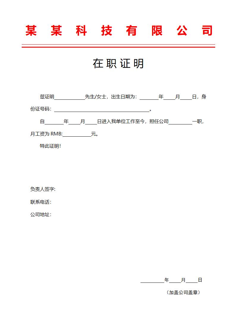 采用红头文件格式,正式证明员工在职身份、入职时间、薪资等信息,为员工各类事务办理提供权威依据。