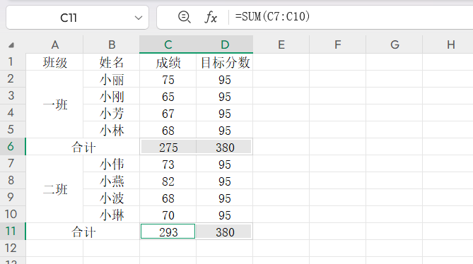 操作时,先用Alt+=在首行小计单元格生成公式,再选中该单元格及下方空白区域,按Ctrl+D即可自动复用公式完成计算,适用于财务报表等场景。