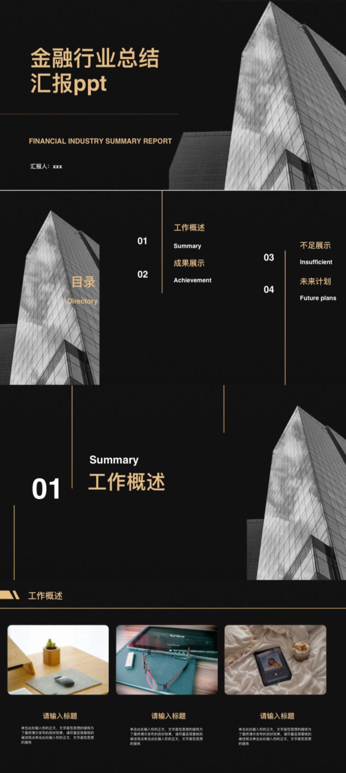 黑色奢华风契合金融行业调性,以高端质感、严谨逻辑,呈现金融业年终总结的专业与格调。