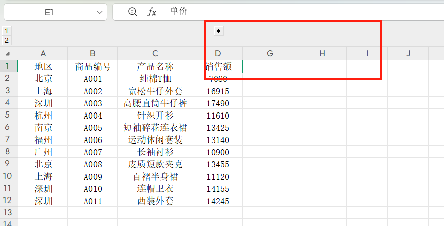假设将「销售额」「单价」「数量」归为一类,只显示销售额,隐藏单价和数量。