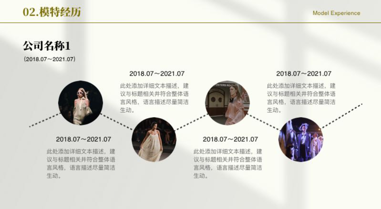 利用PPT排版优势,以时间轴形式呈现工作经历:用直线、曲线或场景化图形(山峰、河流等)作为轴线,添加时间标记与对应图文,搭配统一字体与主题色,让职业历程直观生动,避免传统文字的枯燥感。