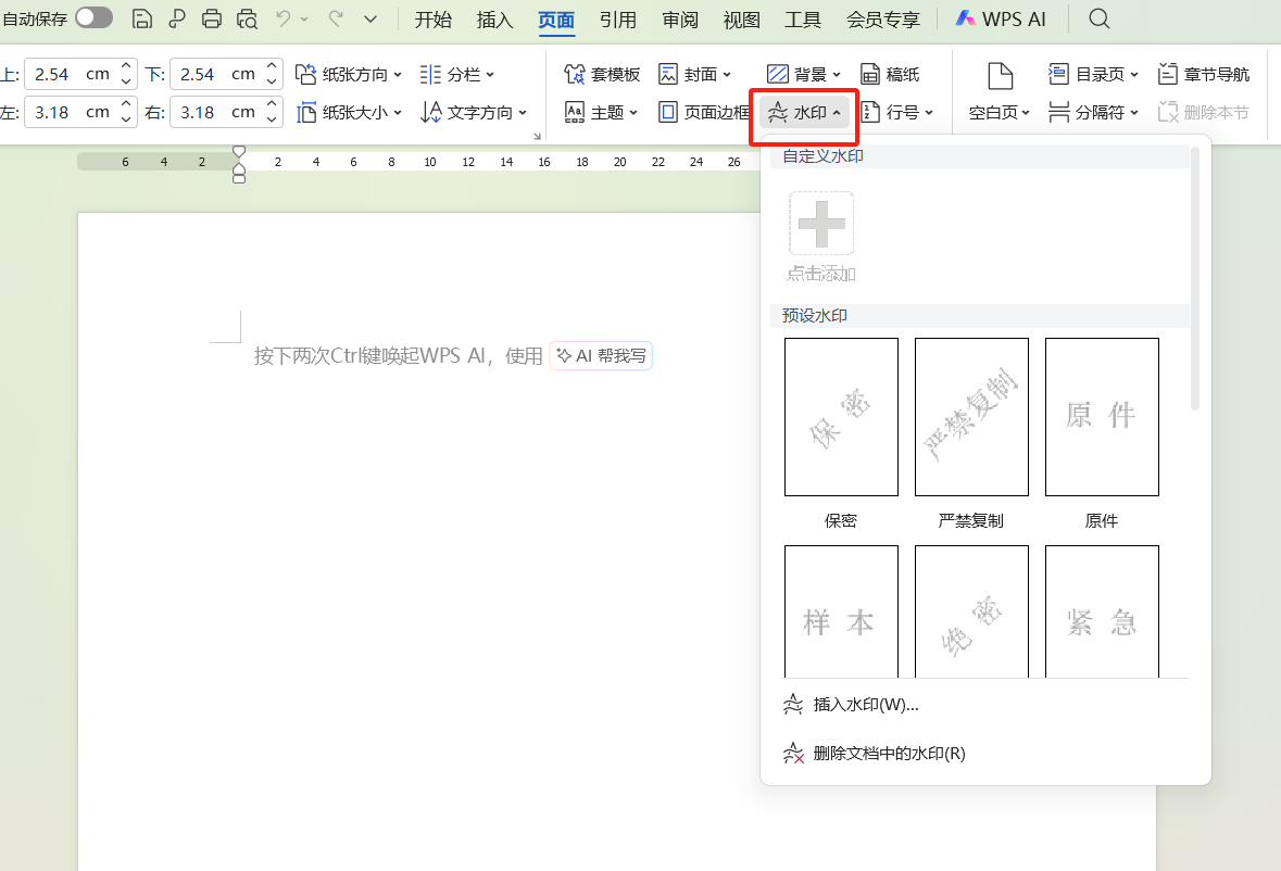 若对水印样式没有特殊要求,文档自带的预设水印足以满足基础需求。