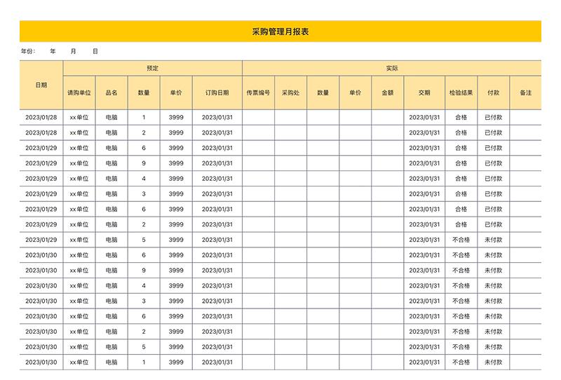 ① 采购管理月报表