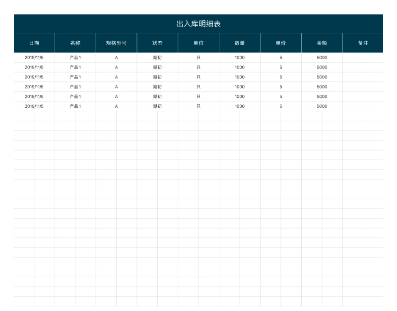为了确保库存数据实时准确,出入库明细表 是仓库管理的基础工具。它用于记录每一笔出库或入库操作,模版包括数量、单位、金额等信息,有助于保持仓库数据清晰透明,减少管理混乱。