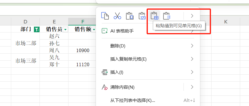 在WPS表格里,是可以在筛选状态下,直接粘贴数据到可见单元格。而Excel是没有这种快捷技巧的,只能靠函数才能实现类似效果。