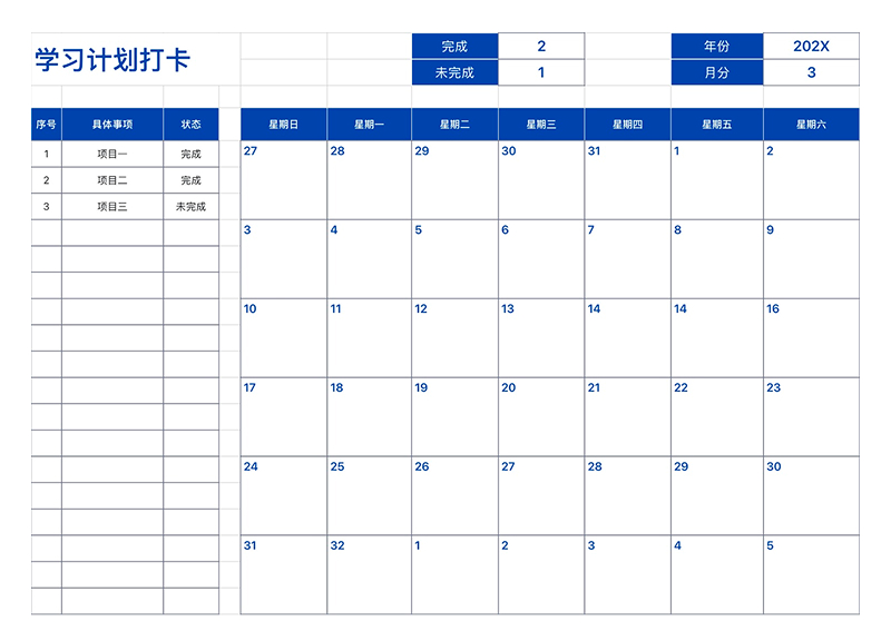 想要保持规律学习节奏,记录每天的进度很重要。学习计划打卡表 可记录学习主题、目标完成情况以及时间安排,帮助你稳步推进复习与技能提升,尤其适合长期学习计划。