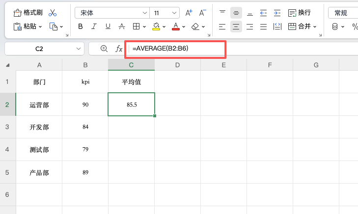 示例:=AVERAGEIF(A2:A5, "运营部", B2:B5)