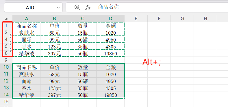 全选数据区域后按下Ctrl+\,系统会自动凸显与其他数据不一致的单元格,瞬间锁定异常项,适合大量数据核对、纠错等场景,大幅提升核查效率。