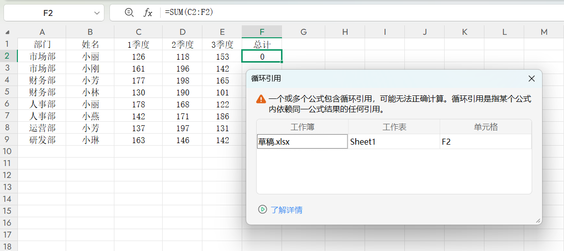 公式:=VLOOKUP(F2,B:C,2,0)会匹配到错误结果(比如不同部门有同名员工)