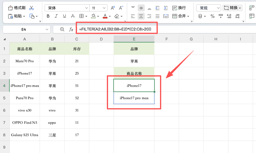 在目标单元格输入: